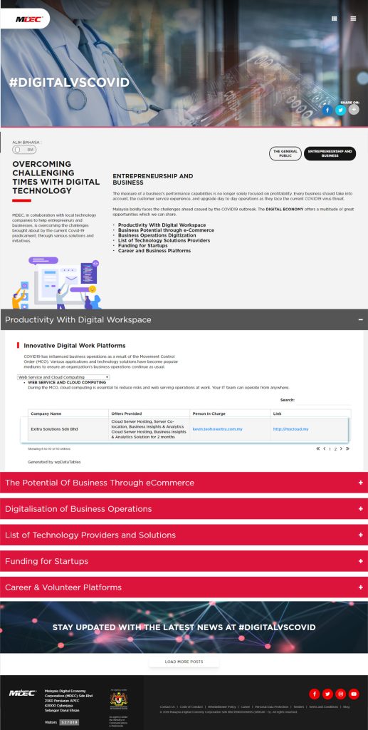Our collaboration with MDEC is to help entrepreneurs in overcoming the challenges brought about by the current Covid-19 pradicament, through variuous solutions and initiatives.